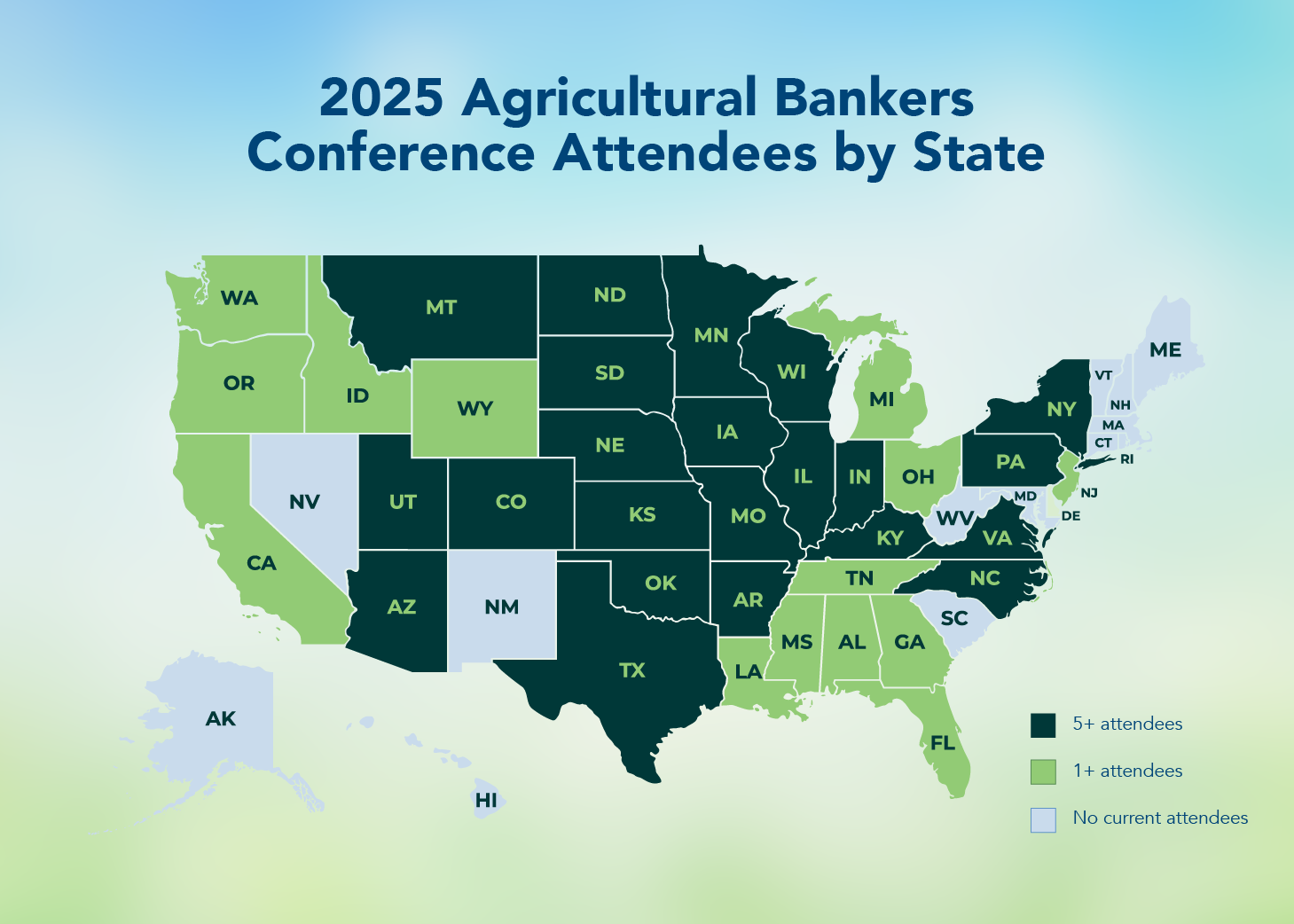 Attendees from 35 states joined us for the 2025 Agricultural Bankers Conference. Will you add your name to the list in 2026?